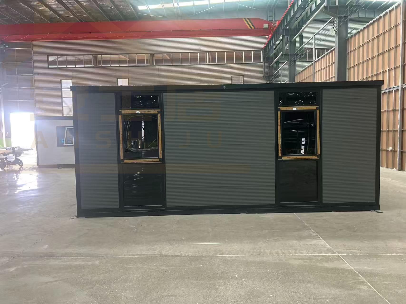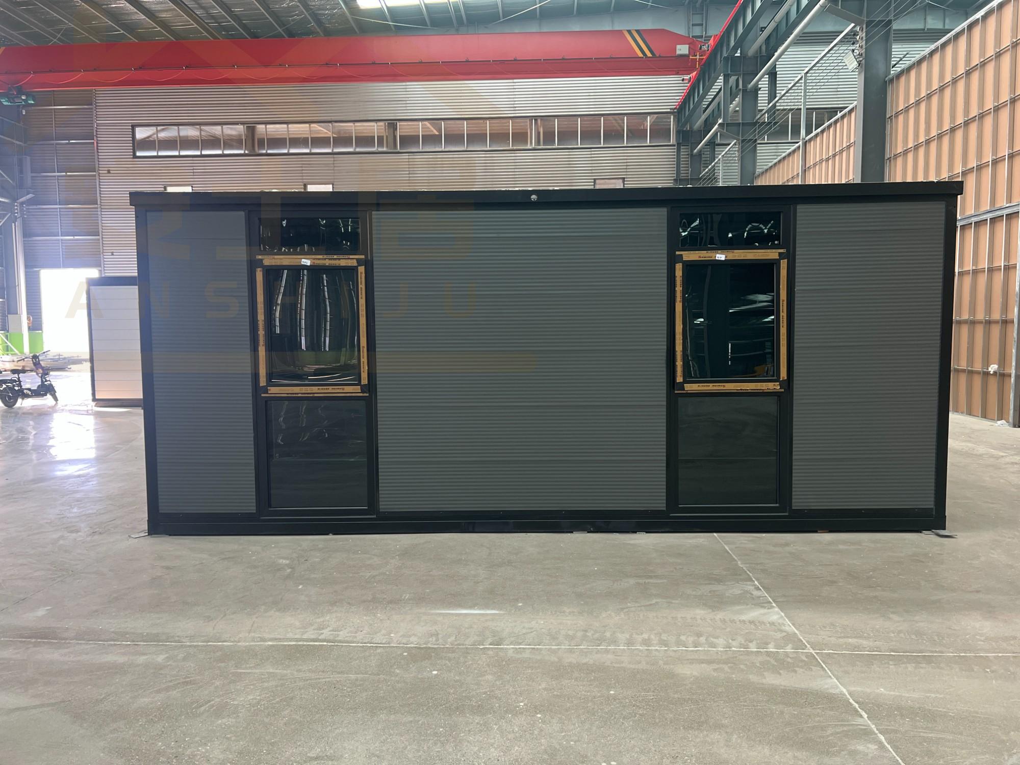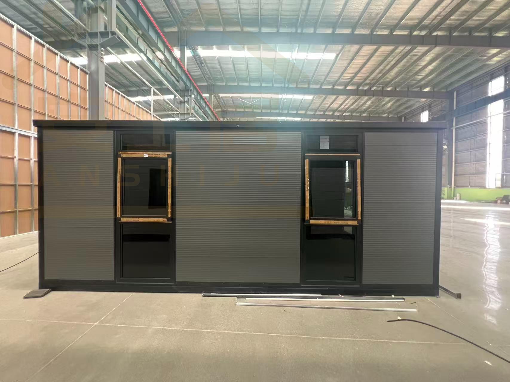 Fachada de vidrio negro y gris 20FT