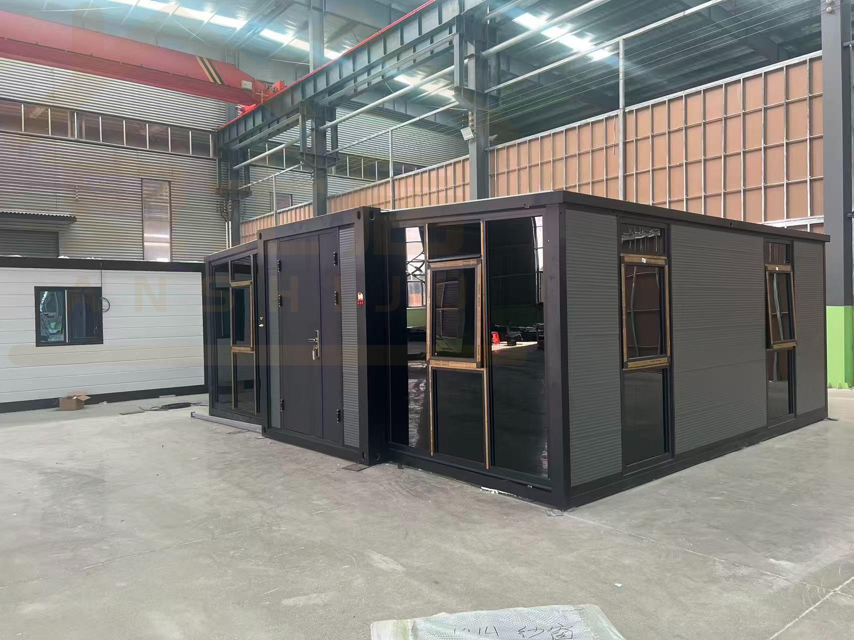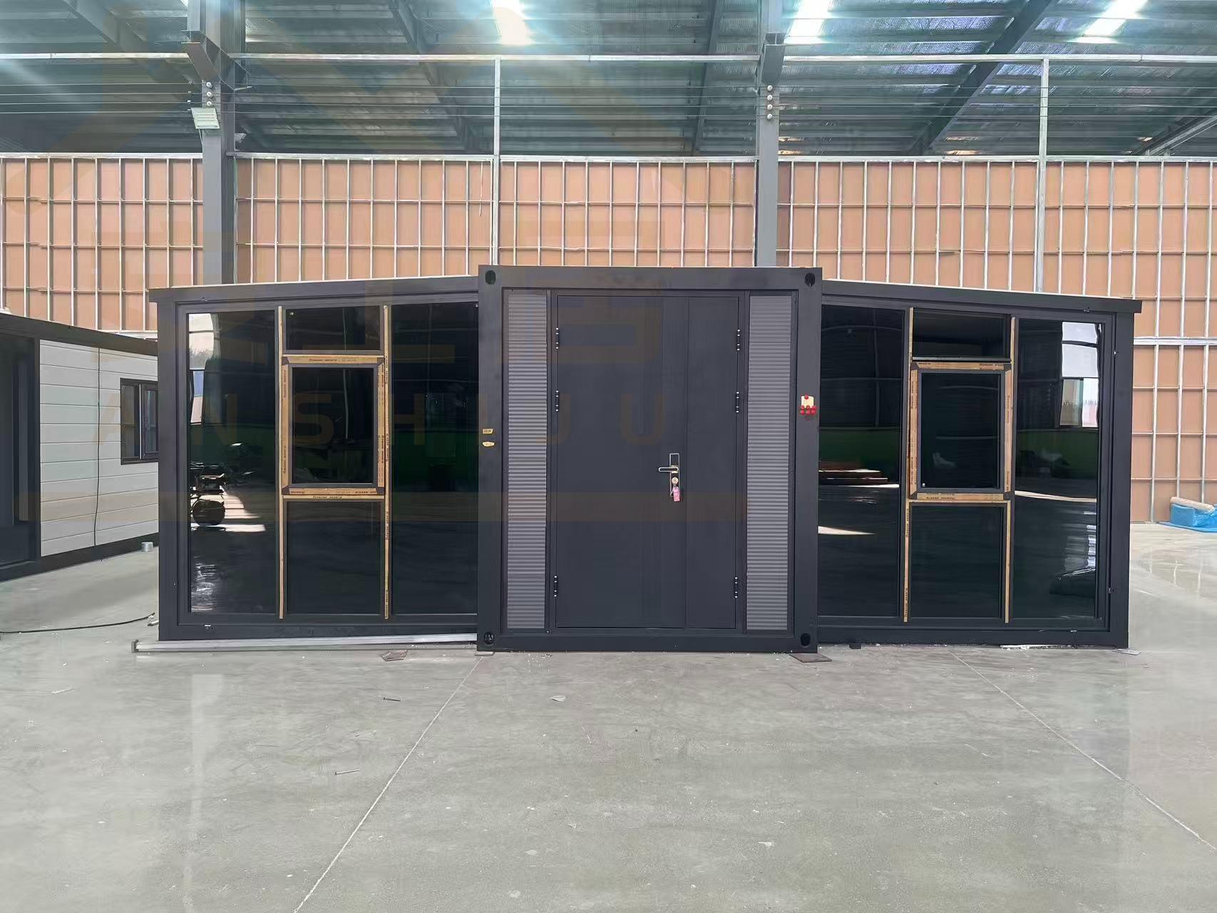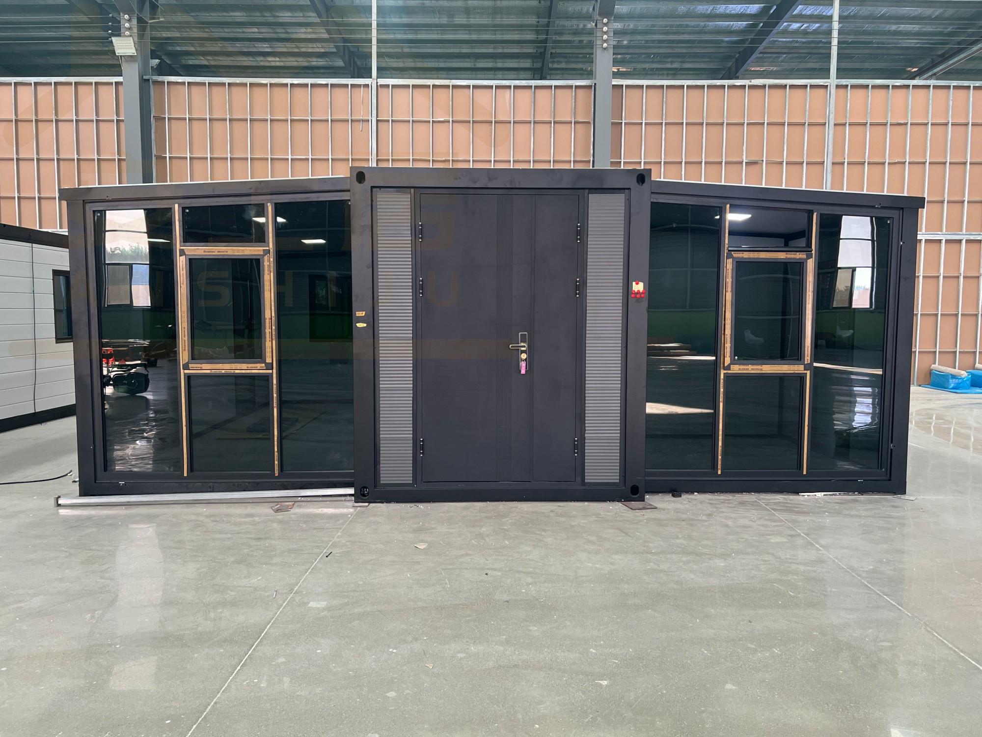 Fachada de vidrio negro y gris 20FT