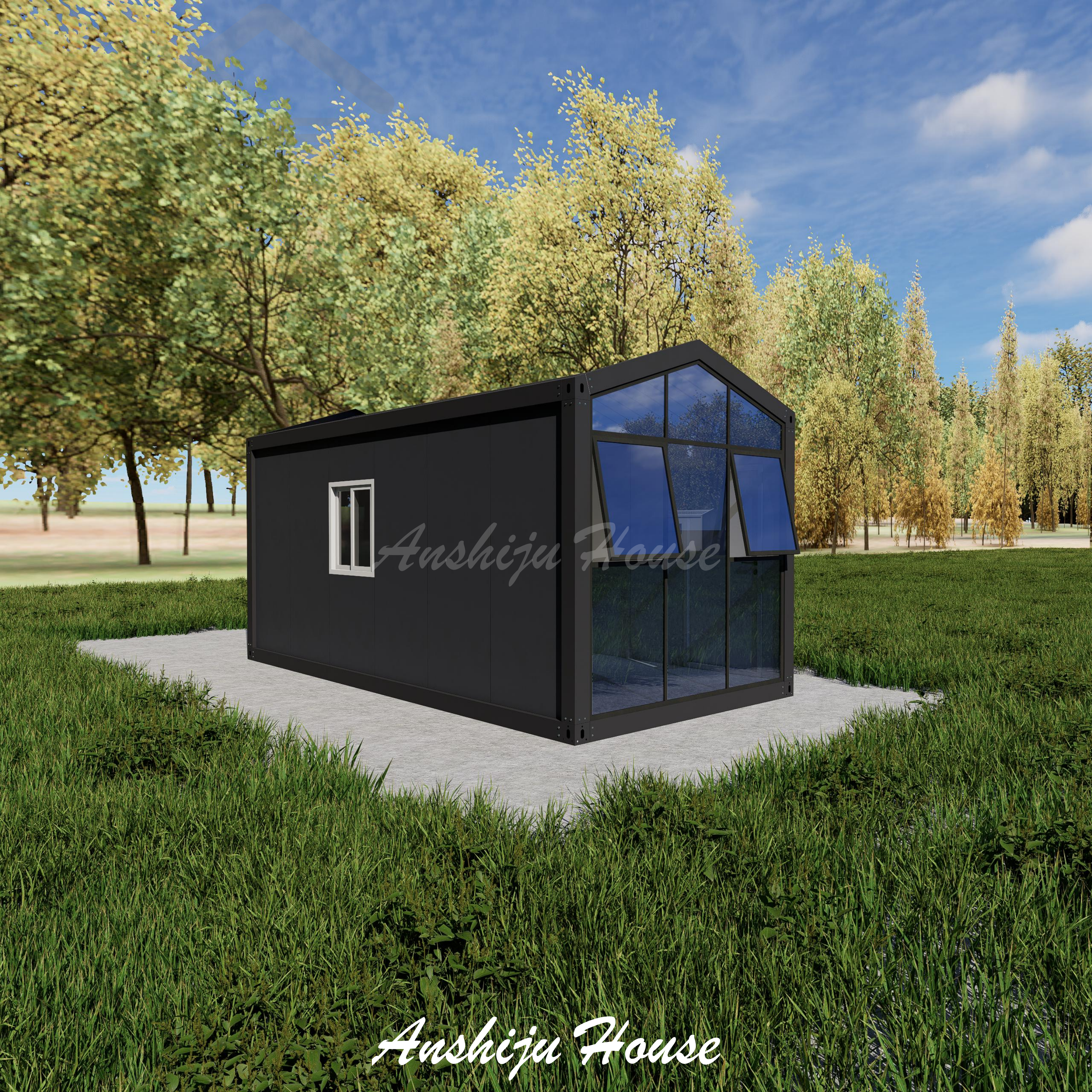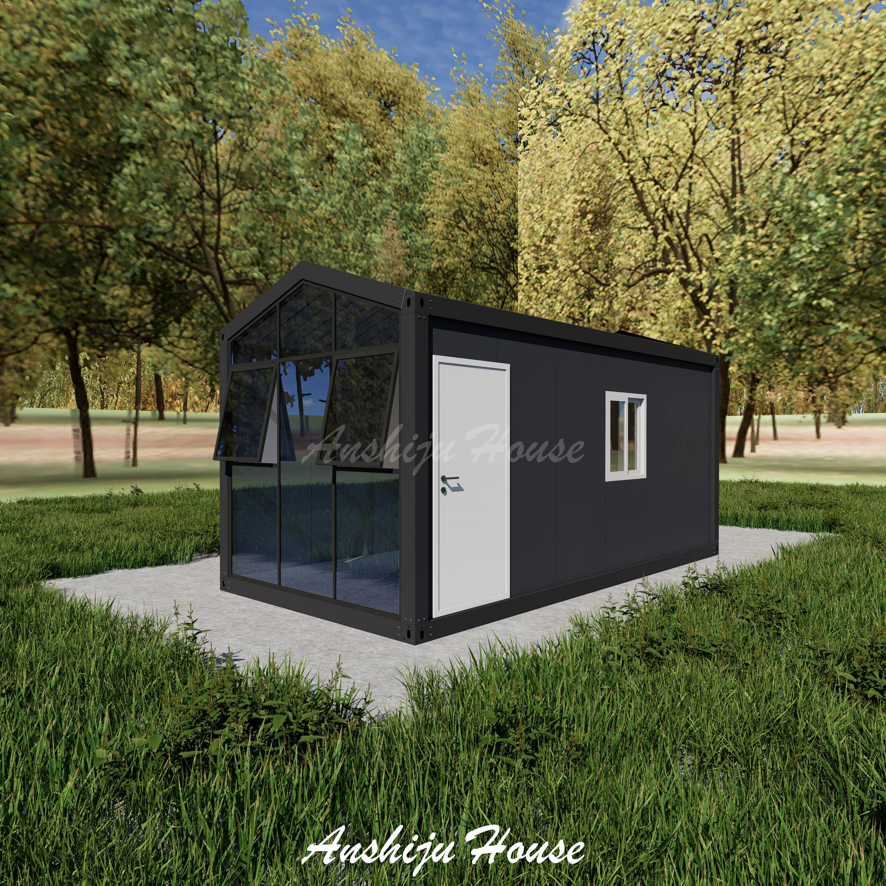 Casa desmontable de fachada de vidrio negro tipo A