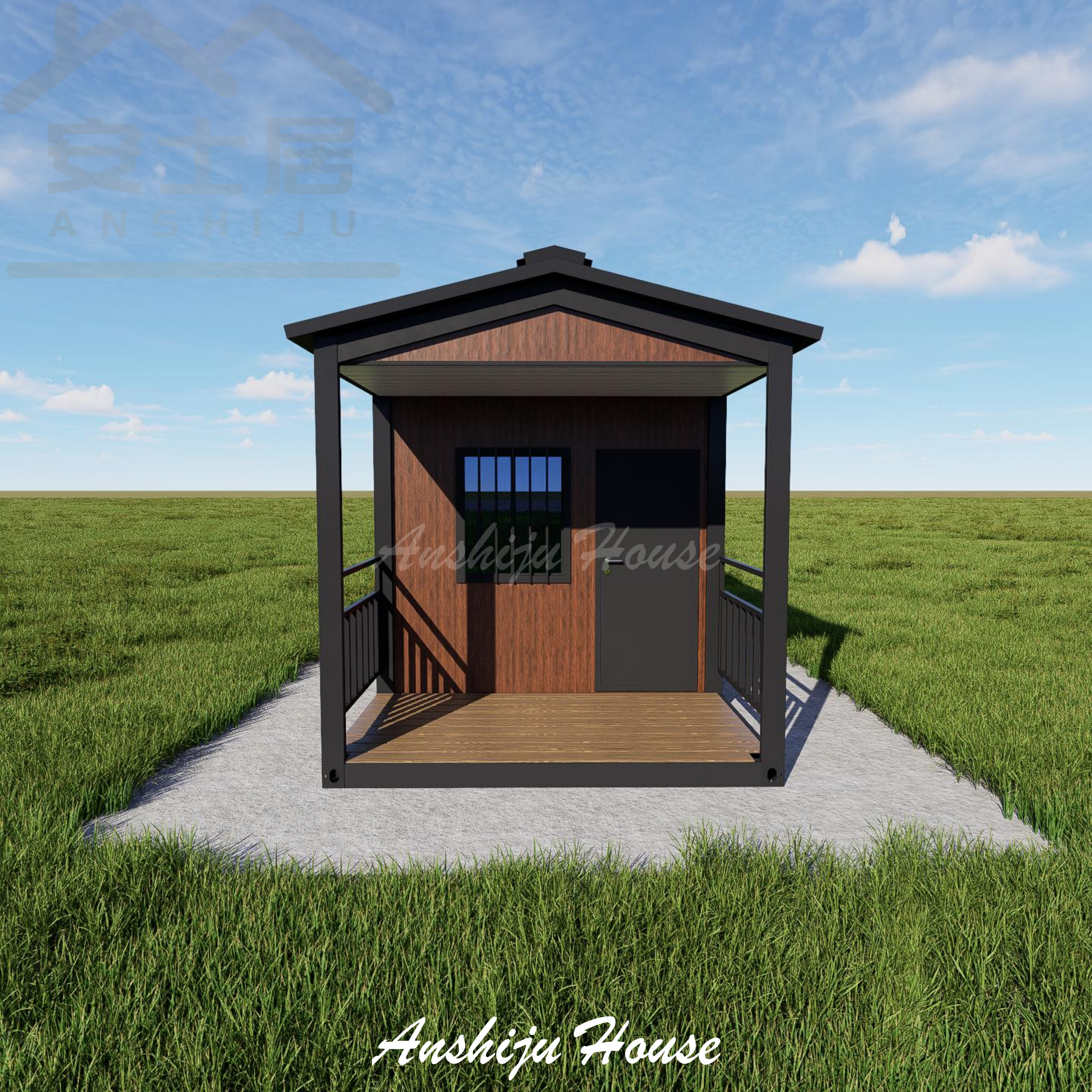 Casa desmontable con balcón de grano de madera tipo A